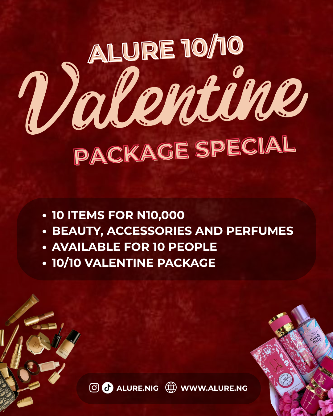 Necklace, earrings , mini perfumes, nail polish, hair accessories, eye mask, lip mask, retinol serum, collagen serum, decant collagen supplements, mouthwash, beard comb, vaniti mirror, hand cream, lip balm, lip gloss, eyeliner, lipliner, Alure scented lotion, valentine mini card , nail stick on, belt, bioaqua face cream, night and day cream, lash installer, foot cream, foot scrub, face cleansing wipes, hair mask ,wristwatch